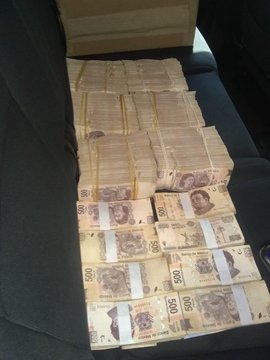 Y es que el pasado viernes, como parte de un operativo, se le marcó el alto a una camioneta donde viajaban los detenidos, y tras hacer una revisión al vehículo por circular en actitud sospechosa, les fueron encontrados 3.3 millones de pesos en efectivo.