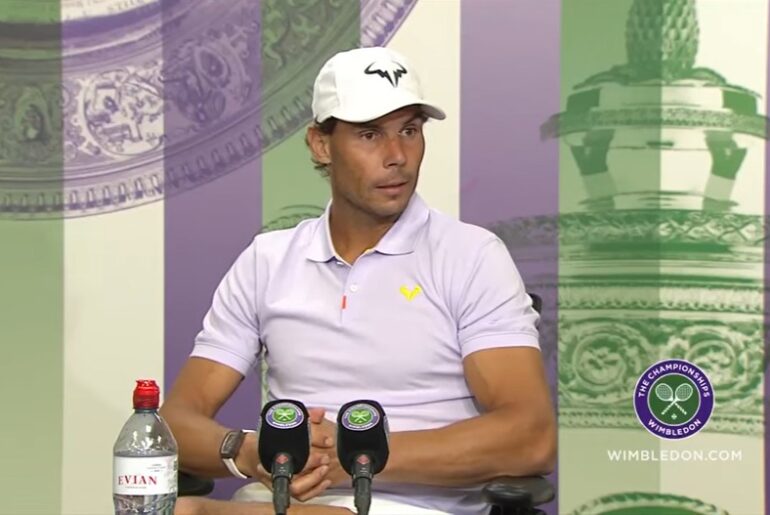 Rafa Nadal anunció este jueves que no disputará mañana la semifinal de Wimbledon que tenía prevista contra Nick Kyrgios debido a su lesión en la zona abdominal.