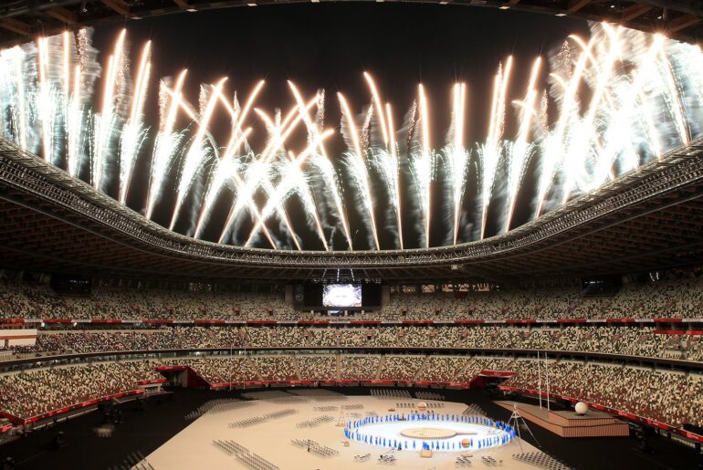 El broche final lo puso el encendido del pebetero. Kuniko Obinata, triple medallista en esquí alpino, Takeuchi Mashiko, exjugador de tenis de mesa y medallista de oro en Tokio’64, y Mayumi Narita, ganadora de quince oros en natación, entraron al estadio portando tres antorchas, que se las dieron a tres ciudadanos anónimos. Éstos, a su vez, se las entregaron a los deportistas paralímpicos Yui Kamichi, Shunsuke Uchida y Karin Morisaki, que fueron los encargados de subir los últimos metros, en sus sillas de ruedas, para encender el pebetero, que iluminó el cielo de Tokio con un chispazo provocado por mil fuegos artificiales.