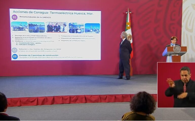 Por su parte la secretaria de Gobernación, Olga Sánchez Cordero, indicó que el Proyecto Integral Morelos consiste en la construcción de dos centrales termoeléctricas en la comunidad de Huexca.