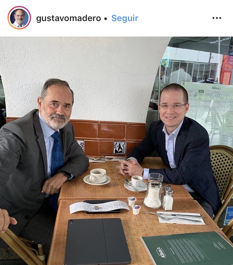 En su cuenta de Instagram, Gustavo Madero, senador y exlíder nacional del Partido Acción Nacional, compartió la imagen donde se le ve junto Anaya Cortés en un café de la colonia Polanco, en Ciudad de México.