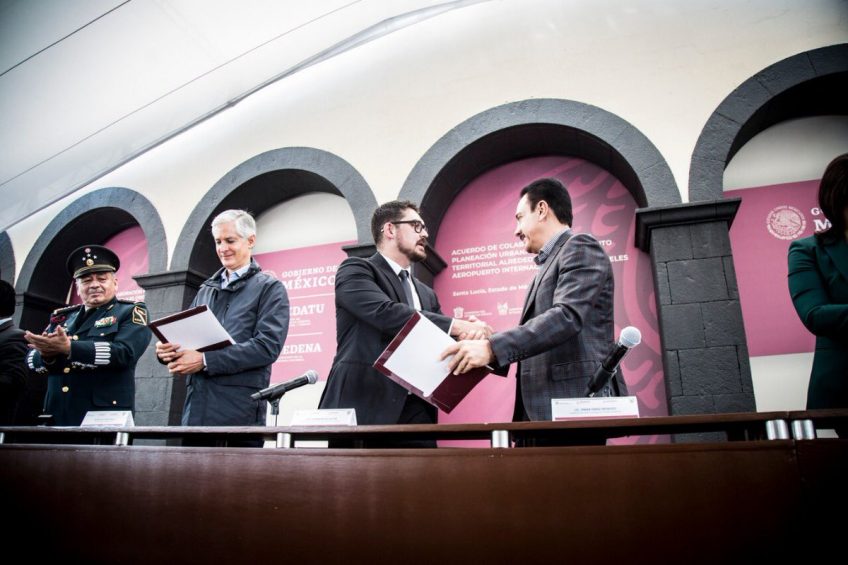 Esta tarde se llevó a cabo la firma de un acuerdo de colaboración entre el gobierno federal, los gobiernos del Estado de México, Hidalgo y los municipios de Tecámac, Tizayuca, Jaltenco, Nexpantla, Tultepec y Tonanitla, para la planeación urbana y el ordenamiento territorial alrededor del nuevo aeropuerto internacional Felipe Ángeles.