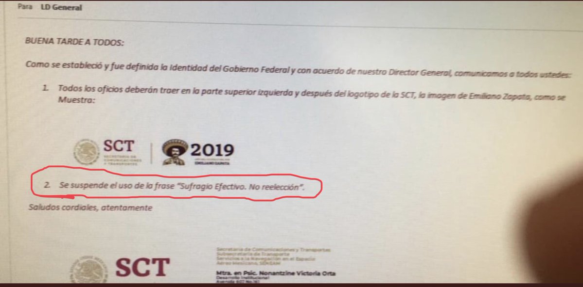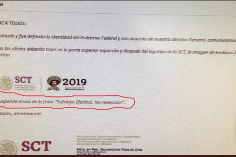 En dicho comunicado se indicaba que ahora los oficios deberían llevar en la parte superior izquierda la imagen de Emiliano Zapata pero sin la leyenda mencionada.
