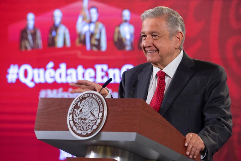 “Vamos a llevar a cabo toda la ceremonia, sólo que no va a haber participación de los ciudadanos por la pandemia; sin embargo, va a haber una representación en imágenes de nuestra República, va a estar representado todo el territorio nacional iluminado en la plancha del Zócalo y se va a encender la llama de la esperanza, una antorcha. Se lleva a cabo el Grito y va a haber esta iluminación, y los pirotécnicos, que van a ser muy atractivos, con mucho arte”, detalló el presidente.