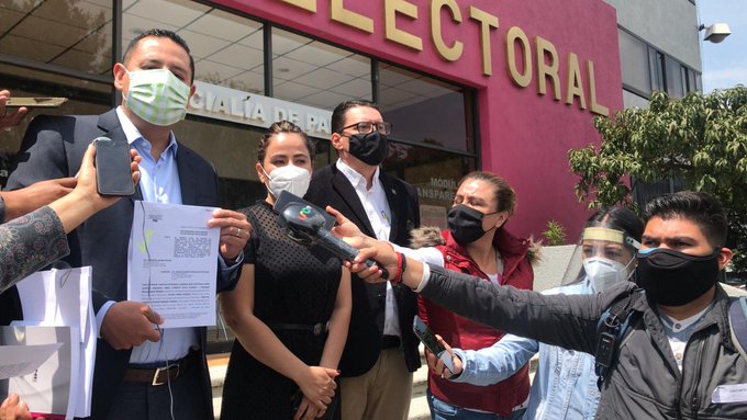 “Venimos a presentar la denuncia por los vídeos en los que sale Pío López Obrador y David León. Se cometieron varios delitos para beneficiar a Morena y a AMLO”, dijo Kenia López en sus redes sociales.