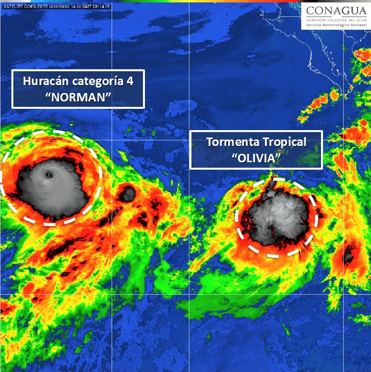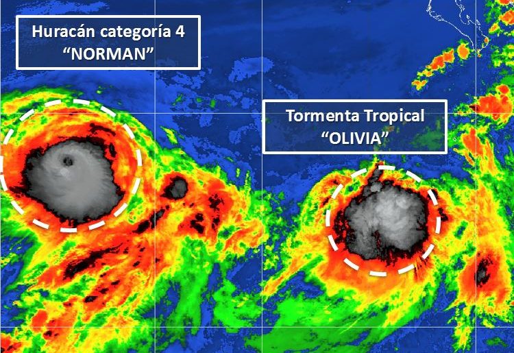 Adicional, el SMN señaló que el huracán ‘Norman’ en el Océano Pacífico se intensificó a categoría 4 en la escala Saffir-Simpson, a más de dos mil km al oeste-suroeste de Cabo San Lucas, Baja California Sur, con vientos máximos sostenidos de 215 km/h, rachas de 260 km/h y desplazamiento hacia el oeste-noroeste a 30 km/h.