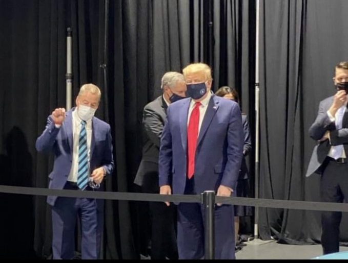 A principios de mayo, Trump visitó las instalaciones en Arizona de la empresa Honeywell, que fabrica mascarillas N95, sin hacer uso de ninguna de ellas. Se paseó por el edificio con la cara descubierta, aunque llevaba unas gafas protectoras transparentes.