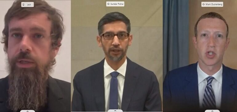 Sundar Pichai de Google, Mark Zuckerberg de Facebook y Jack Dorsey de Twitter, ofrecieron sus comentarios de apertura por videoconferencia a los miembros del Comité de Comercio de la cámara alta del Congreso, defendiendo ampliamente la Sección 230 de la Ley de Decencia en las Comunicaciones, que protege a las plataformas de demandas relacionadas con contenido publicado por terceros.