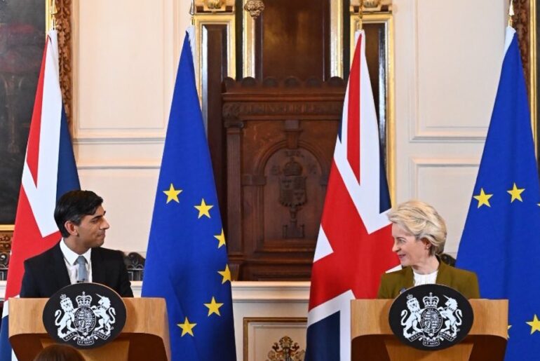 Después de meses de tensión y de arduas negociaciones, el primer ministro británico, Rishi Sunak, y la presidenta de la Comisión Europea, Ursula von der Leyen, anunciaron el acuerdo en una conferencia de prensa en Windsor, al oeste de Londres.