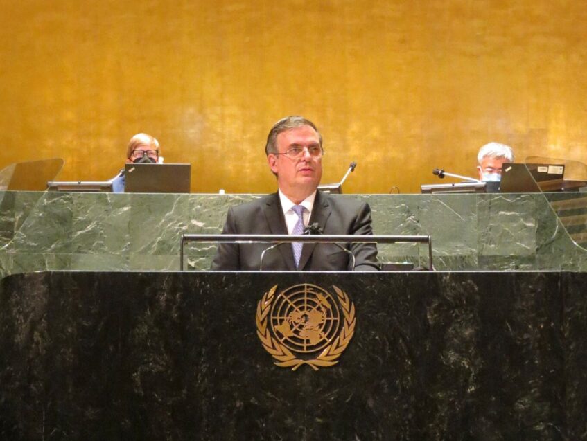 El secretario de Relaciones Exteriores, Marcelo Ebrard, dirigió un mensaje en el marco de la 76 Asamblea General de las Naciones Unidas, donde se enfocó en las lecciones de la pandemia, así como en los retos por venir. Dijo que México ha sido una importante voz en la lucha por el acceso equitativo a herramientas contra la pandemia.