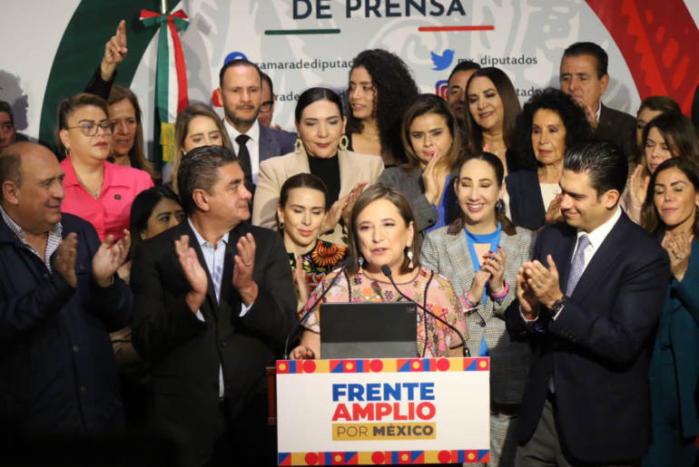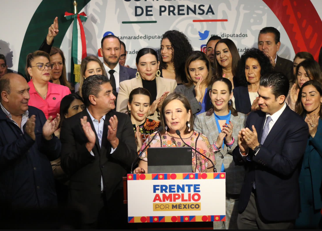 Xóchitl Gálvez presentó la propuesta de Ley acompañada de los coordinadores parlamentarios del PAN, PRI y PRD en San Lázaro.