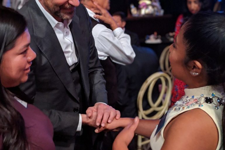 Asimismo, la cuenta de Twitter de la película Roma difundió una imagen en la que se observa al reconocido actor Bradley Cooper en compañía de la joven mexicana posando para la foto. Yalitza asistió al almuerzo en un espectacular vestido blanco y en compañía de su coprotagonista, Marina de Tavira, y del director, Alfonso Cuarón.